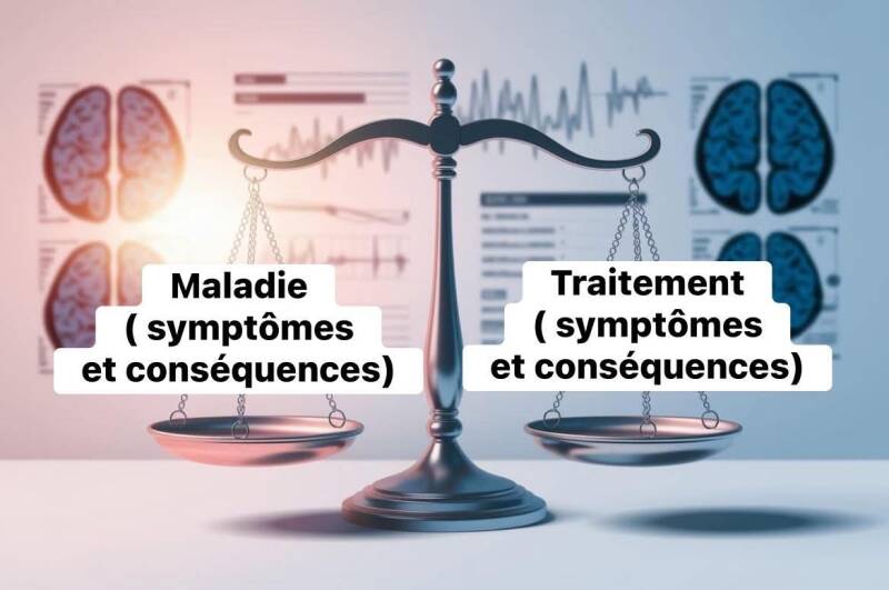 On fait une éternelle balance maladie (symptômes et conséquences) versus traitement (symptômes et conséquences)