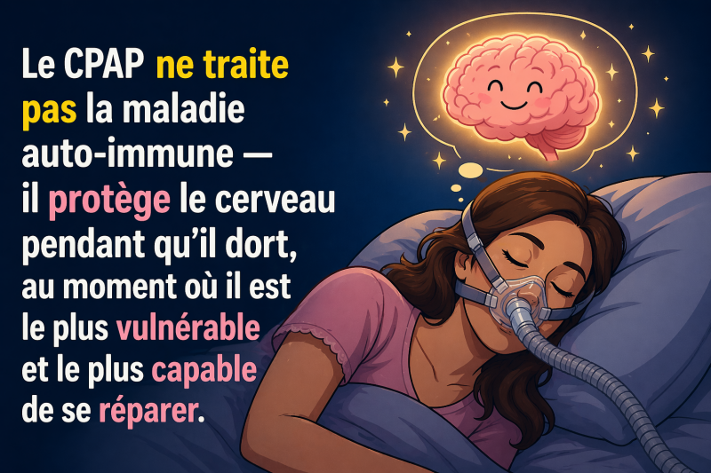 “Le CPAP ne traite pas la maladie auto-immune — il protège le cerveau pendant qu’il dort, au moment où il est le plus vulnérable et le plus capable de se réparer.”